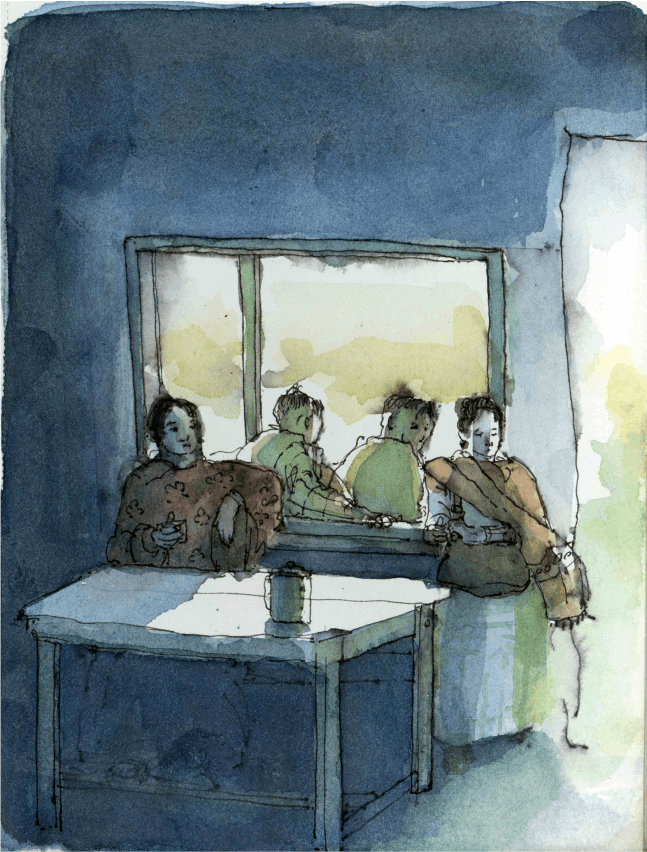 Bikiash and Jejus waiting for me to yell back that I'm done drawing.